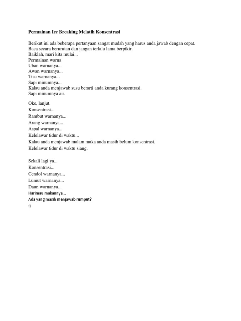 Permainan Ice Breaking Melatih Konsentrasi Pdf